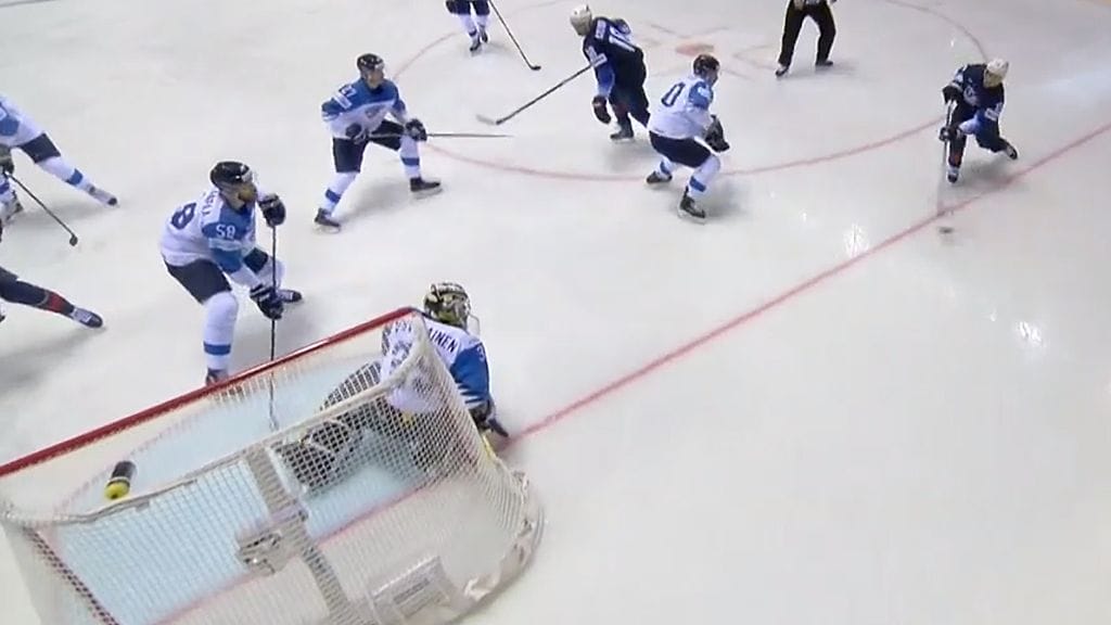 Yhdysvallat meni jo 2-0-johtoon ajassa 10.36, kun taiturimainen Johnny Gaudreau laukoi kiekon Suomen maalin miinuskulmasta, Vehviläisen kypärän kautta.