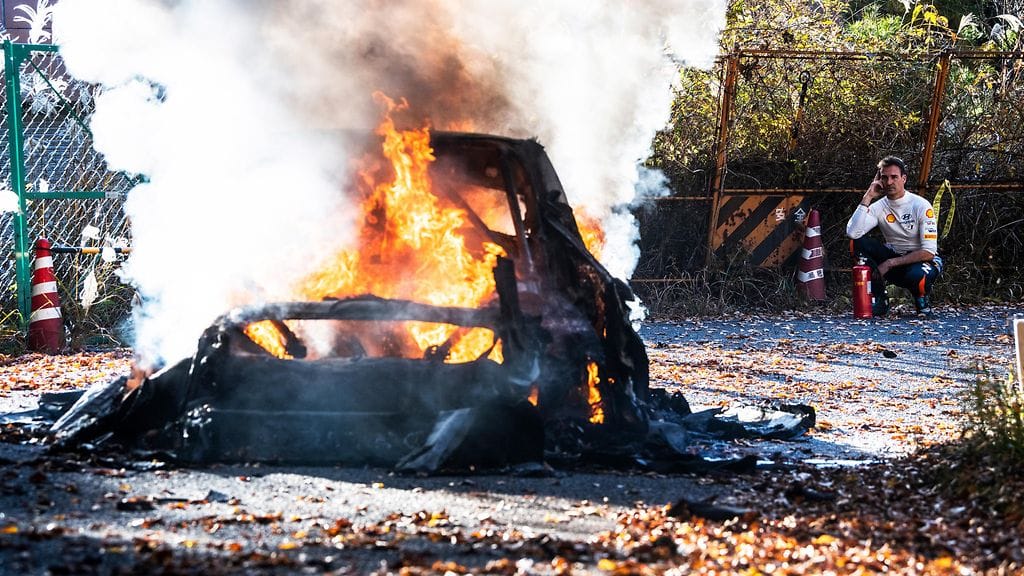 Japanin MM-rallin perjantaipäivä alkoi dramaattisesti, kun Hyundain Dani Sordon auto paloi poroksi keskellä erikoiskoetta ja ek jouduttiin tämän vuoksi keskeyttämään.