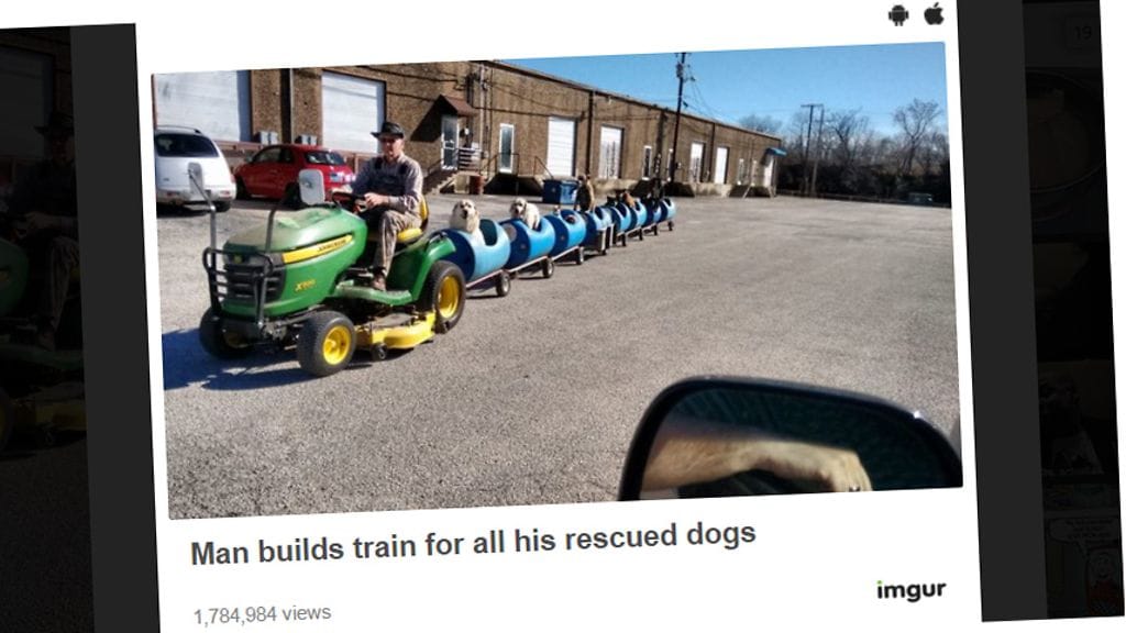 Vaikka koirilla on paljon tilaa leikkimiseen ja juoksenteluun tallilla, mies halusi viedä koirat myös pienille retkille vähän kauemmas. Hän päätti rakentaa junan, jolla tämä olisi mahdollista.