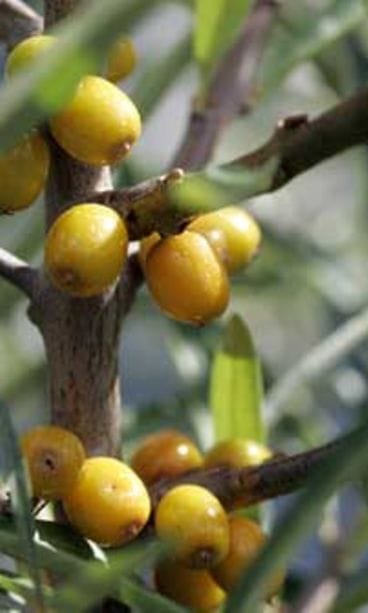 - Tyrnimarja sisältää myös runsaasti monityydyttämättömiä rasvahappoja sekä B12-vitamiinia. Lisäksi marjassa on superoksididismutaasi-nimistä entsyymiä, joka on yksi tehokkaimmista tunnetuista antioksidanteista.
