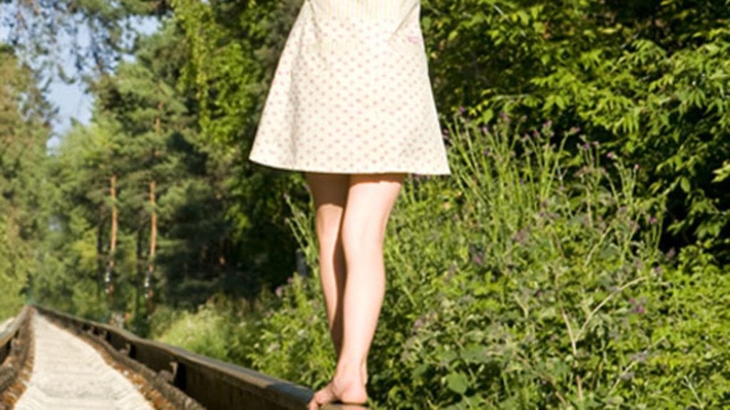 Tyttö siirtyi myllyn puoleiselle radalle. Hän käveli kiskojen välissä selkä veturiin päin, kunnes havahtui huutoon ja kääntyi.
