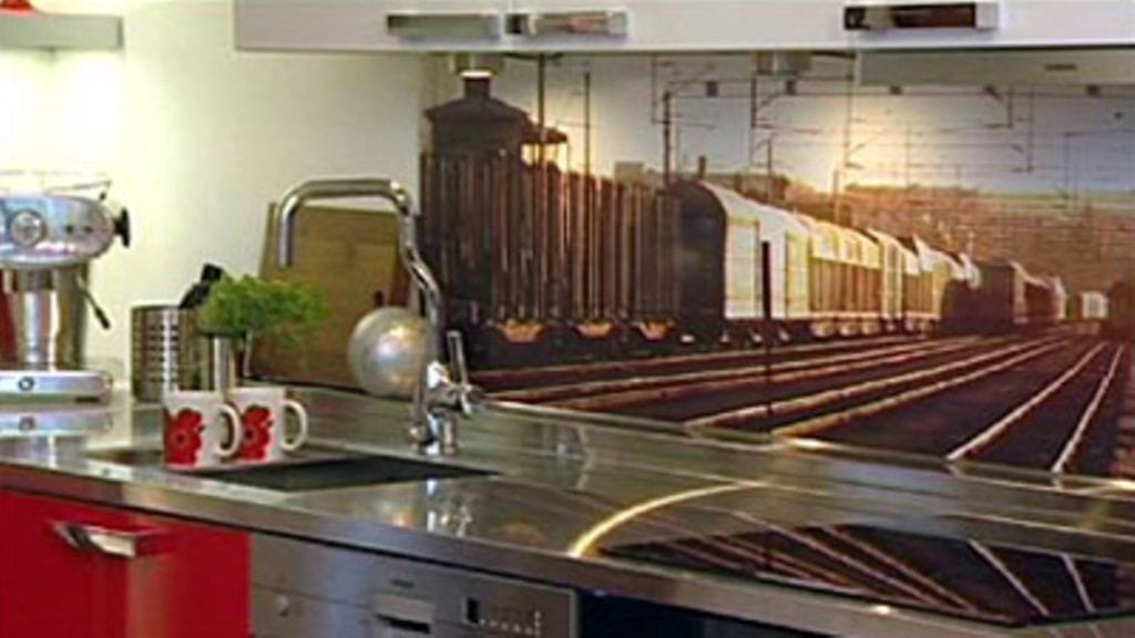 Ellenin uusi asunto valmistui keittiön myötä. Sinne tuli kiiltävät, punaiset ja valkoiset kaapit ja kvartsipintainen saareke – ja kaiken kruunaa teräkseen painettu, taloon sopiva kuva.