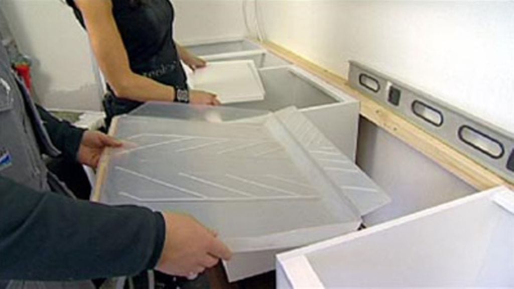 Työtaso on poikkeuksellisesti 700 millimetrin levyinen. Koska kaappien rungot ovat standardin mukaisesti 600 millimetriä syvät, seinään kiinnitettiin niiden yläreunan tasalle 2 x 2 tuuman soiro, johon ne kiinnitettiin yläosastaan. Tästä saavutettiin sellainenkin etu, että kaappien ja seinän väliin jäävään tyhjään tilaan oli poikkeuksellisen helppoa vetää putkitukset.