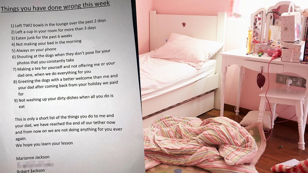 Nicolan vanhemmat Marianne, 52, ja Robert, 54, kyllästyivät tyttärensä siivottomuuteen ja kirjoittivat tälle avoimen kirjeen siitä, mitä kaikkea Nicola on tehnyt väärin lomansa aikana.
