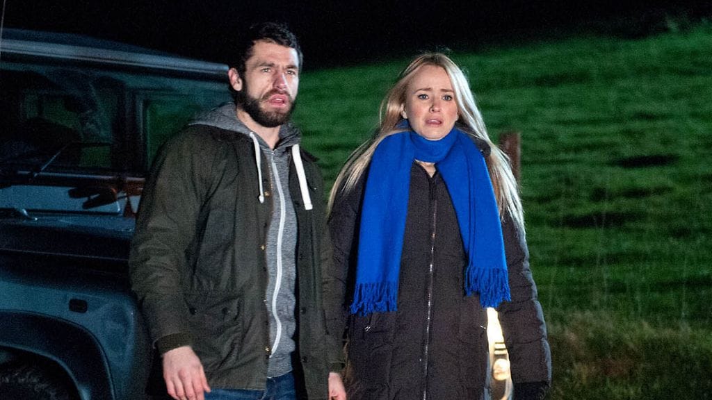 Samaan aikaan, kun juhlakansa oli kokoontunut hääpaikalle, Chrissie (Louise Marwood) sytytti miehensä Robetin (Ryan Hawley) auton tuleen, koska tämä oli pettänyt Chrissietä.
