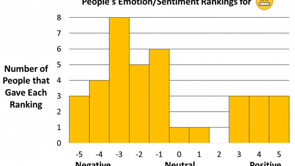 Tutkimusryhmä järjesti kyselyn, jossa pyydettiin käyttäjiä kuvaamaan viiden eri alustan emoji-kuvia sanoin. Samalla käyttäjän tehtävänä oli asettaa kuva -5 ja 5 väliselle asteikolle koetun positiivisuuden tai negatiivisuuden mukaan. Iloiset emojit päätyisivät siis asteikon plussapäätyyn ja surulliset tai vihaiset emojit miinuspäätyyn.