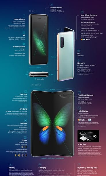 Suomessa tuodaan saataville rajallinen määrä Galaxy Fold -laitteita. Galaxy Foldin suositushinta on 2 100 euroa, ja kaikkien tilausten mukana toimitetaan langattomat Galaxy Buds -kuulokkeet, kevlar-suojakuori sekä vuoden vakuutus Samsung Care+ -palvelun kautta.