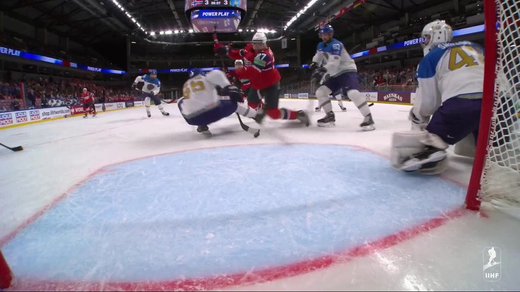 Vain hetki tasoitusosumasta Norjalla oli mahdollisuus iskeä johtomaali ylivoimalla. Järjetön miekkailu maalin lähietäisyydellä tuotti kuitenkin tyhjän arvan. Kazakstan-puolustaja pelasti kiekon selinmakuulta vielä juuri ennen kuin se saatiin runnottua sisään.