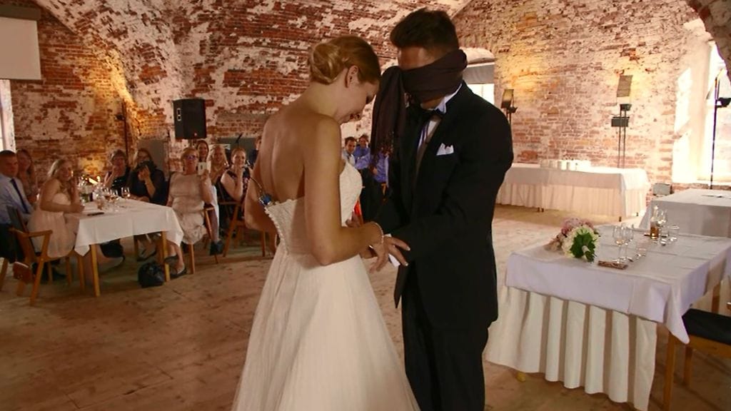 Millan kaasot olivat keskineet parin pään menoksi ohjelmaa häävastaanotolle. Pari pääsi etsimään toisistaan hakaneuloja sokkona.