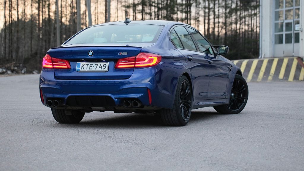 Se on tunnistettava, muttei huuda liikaa erilaisuuttaan. Puskurit ovat aggressiivisemmat, aavistuksen levitetyistä lokasuojista löytyvät jäähdytysaukot ja takaa neljä pyöreää pakoputkenpäätä. Kyseessä on luonnollisesti uusi kuudennen sukupolven BMW M5, minkä varmistavat myös edestä, sivuilta lokasuojista ja takaa löytyvät M5-logot.