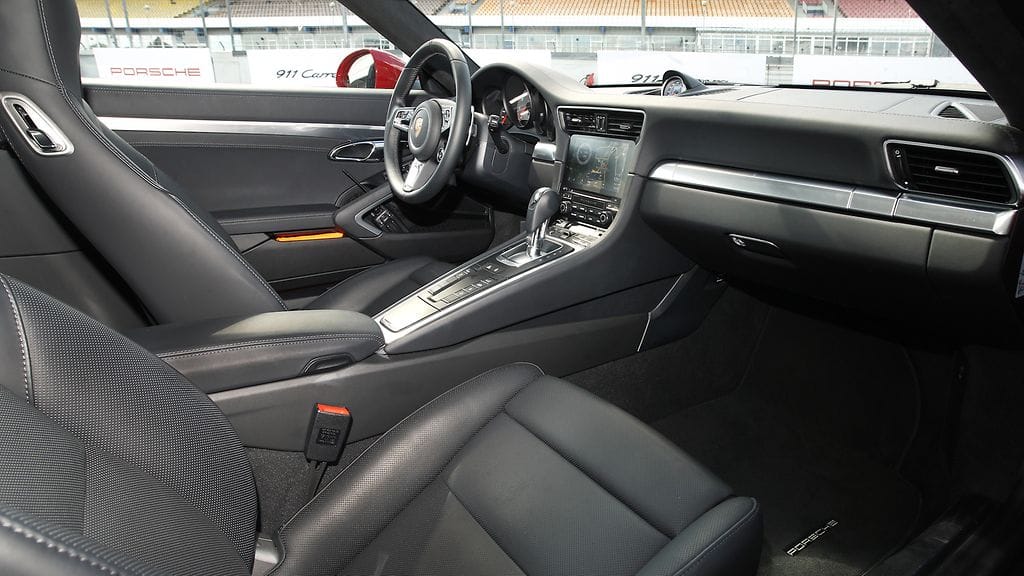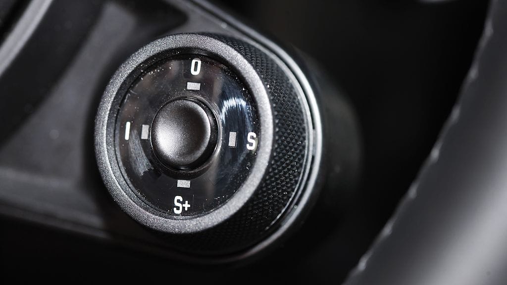 Alla on 420-hevosvoimainen Carrera S. Porschen testikuljettaja säätää auton urheilullisiimpaan ajomoodiin ratilta. Hetkoken… säätönappi on täysin uusi ja mustasta väristään huolimatta mieleen Ferrarin kuuluisan Manettino-kytkimen. Kiertokytkimenssä on neljä kirjainta: I, O, S ja S+. Kuljettaja saa näin apua elektroniikalta, ajaa hän sitten liukkaalla tai radalla. Nyt valittuna on ymmärrettävästi kaikkein urheilullisin asento eli S+.