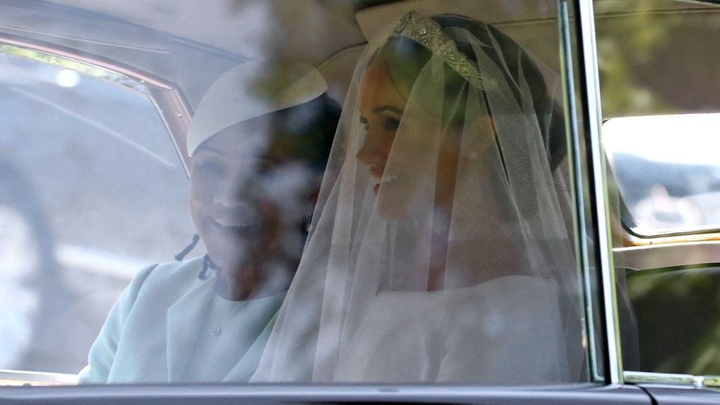 Meghan Markle on matkalla kohti Windsorin linnaa.