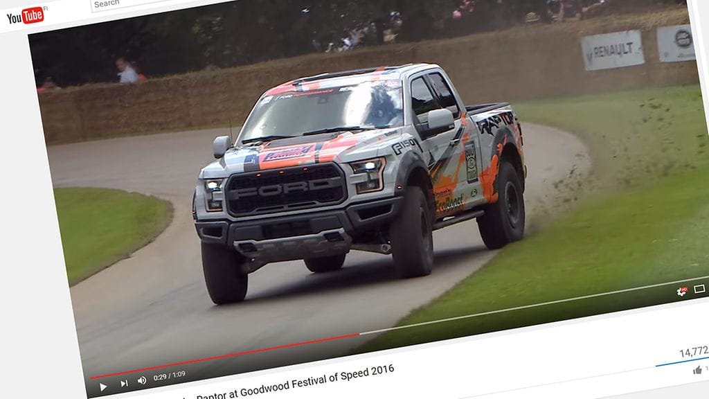 Oheisella videolla maailman suosituimman auto-ohjelman Top Gearin entinen testikuljettaja Ben Collins näyttää, miten Ford F-150 Raptor taittuu vähän aggressiivisempaan ajoon Goodwoodin mäkikilpailussa.