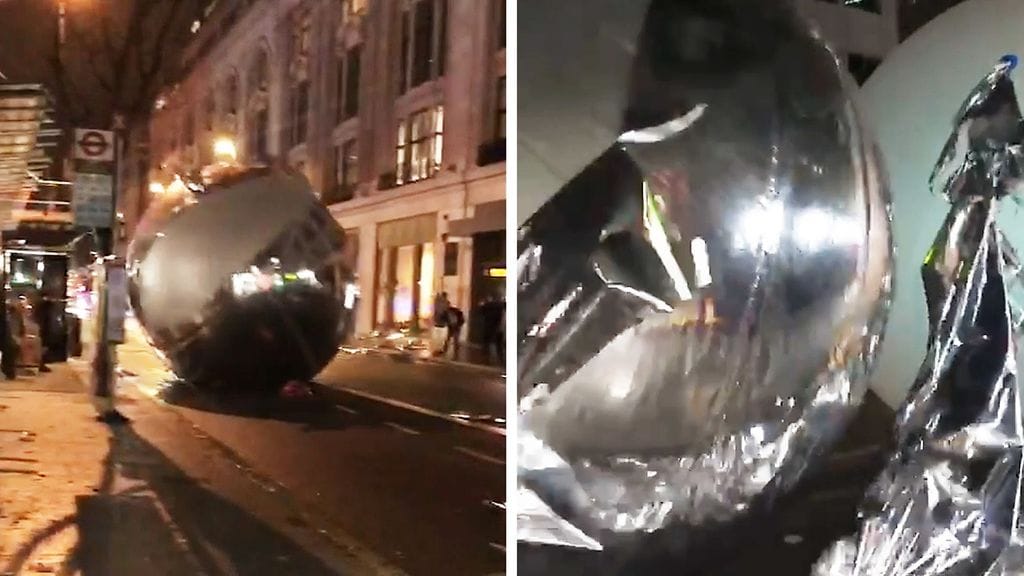 Lontoossa koettiin erikoinen tilanne, kun kahden hopeafoliolla päällystetyn koristepallon nähtiin vierivän pitkin katua.