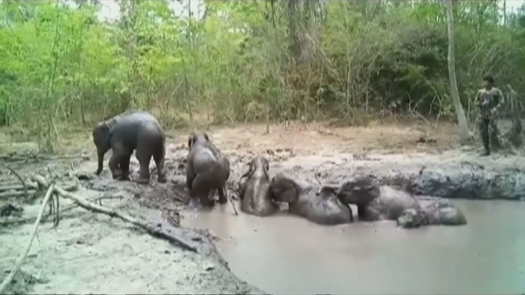 Thaimaassa pelastettiin viikonloppuna kuutta mutakuoppaan jumiin jäänyttä norsunpoikasta. Pikkunorsut joutuivat kiipeliin Bangkokin itäpuolella sijaitsevassa kansallispuistossa.