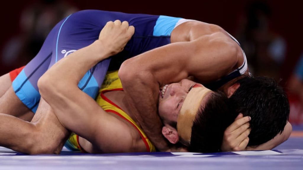 Tokion olympiapaineissa sattui erikoinen puremistapaus kesken ottelun. Kazakstanin Nurislam Sanajev iski välieräottelussa hampaansa kiinni intialaisen Ravi Kumar Dahiyan käsivarteen selvitäkseen selätyksestä.