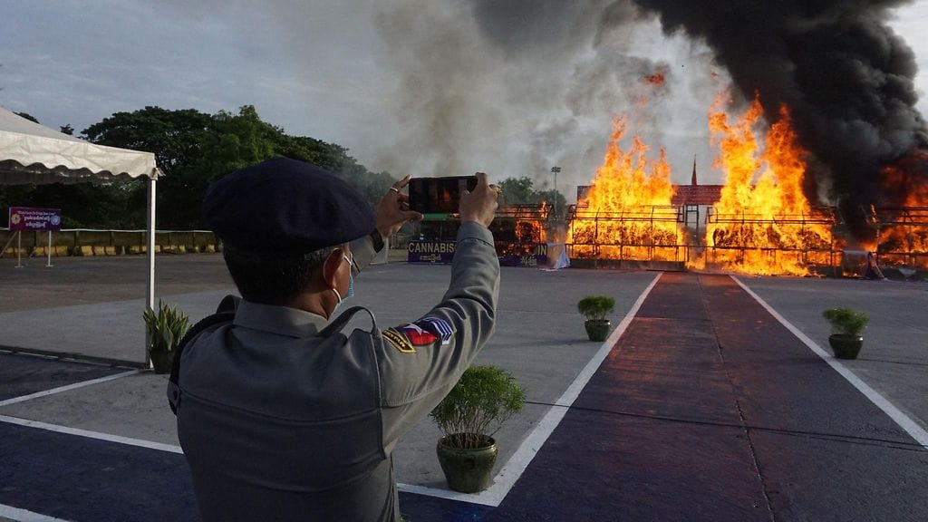 Myanmarissa oopiumin, heroiinin ja metamfetamiinin palavien säkkien savupilvet täyttivät taivaan lauantaina. Aasian maassa tuhottiin kerralla liki 500 miljoonan euron arvosta huumeita.