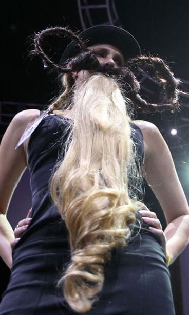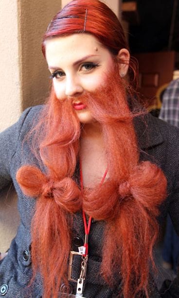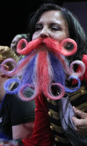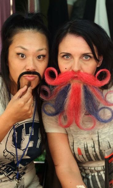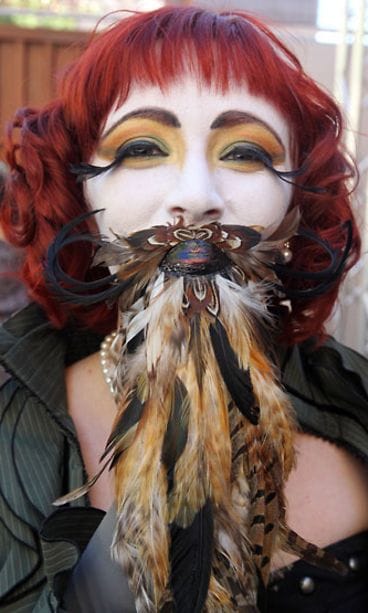 Toista kertaa järjestetty parta- ja viiksikilpailu keräsi näytöslavoille naisia partoineen ja viiksineen. Luomuksien joukossa mielikuvitus oli päässyt valloilleen, kun partoja ja viiksiä oli rakennettu erilaisista materiaaleista kukista sulkiin.