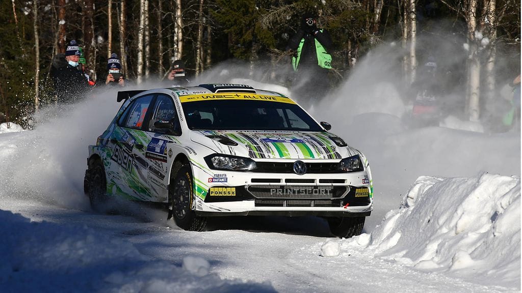 Lappi edusti napapiirillä italialaista Movisport-tallia, mutta Volkswagen Polo R5 -auto tuli lievestuorelaiselta Printsportilta. Samanlainen kuvio on viritteillä Portugalin rallia varten.