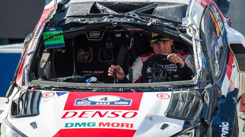 Esapekka Lapin ja Janne Fermin rallipäivään tuli hurja käänne – Toyotan WRC-auto muuttui avomalliksi 150 kilometrin tuntivauhdissa