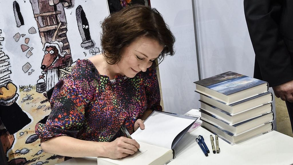 Runoilija Jenni Haukio jakoi signeerauksia ja keskusteli runoudesta Helsingin kirjamessuilla.