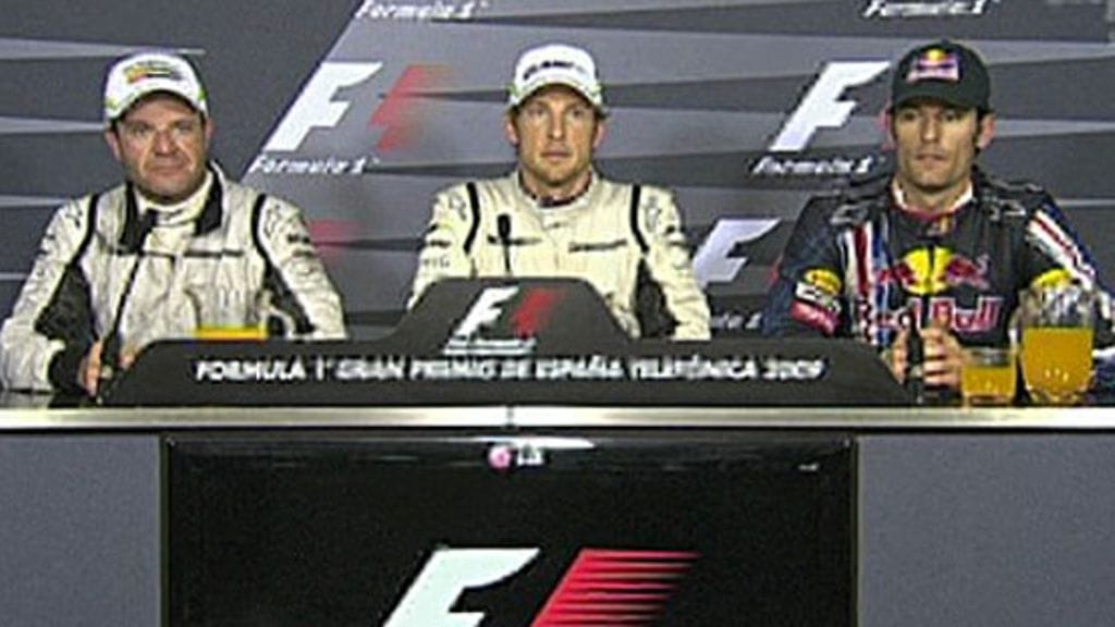 JB: Itse asiassa siinä kävi toisin päin. Minulle vaihdettiin varmuuden vuoksi kahden pysähdyksen taktiikka. Me uskoimme kolmen pysähdyksen olevan nopein taktiikka. Autoon laitettiin niin paljon bensaa, että se tuntui todella raskaalta. Pelkäsin putoavani Massan ja Vettelin taakse, mutta niin ei käynyt. Sen jälkeen yritin keskittyä ajamaan mahdollisimman tasaisia kierroksia. Kaikki voitot merkitsevät paljon, mutta on erityisen hienoa palata Eurooppaan ja voittaa täällä Barcelonassa. Tämä on aina ollut minulle vähän vaikea rata, joten tämä antaa minulle paljon itseluottamusta loppukauteen.