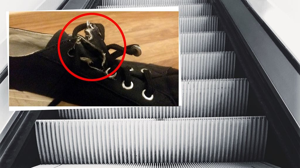 Espoolaisen Marki Sannemannin reissu kauppakeskus Isoon Omenaan meinasi päättyä huonosti, kun liukuporras imaisi hänen kenkänsä nauhat sisuksiinsa.