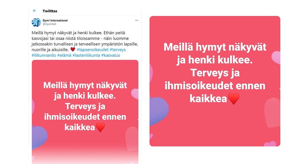 Helsingissä ja Espoossa toimivan lasten ja nuorten kuntoklubi Gymi on päivittänyt tviitin, joka hämmentää sosiaalisessa mediassa. Päivityksessä kehotetaan olemaan käyttämättä kasvomaskia Gymin tiloissa.