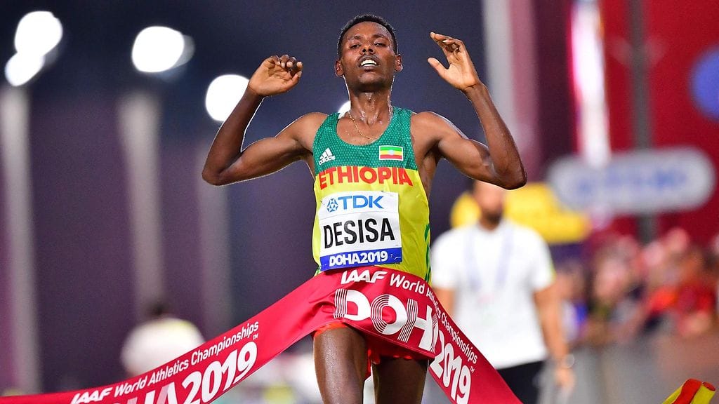 Etiopia on ottanut kaksoisvoiton miesten maratonilla yleisurheilun MM-kisoissa Dohassa. Voittoon juoksi 29-vuotias Lelisa Desisa ajalla 2.10,40.