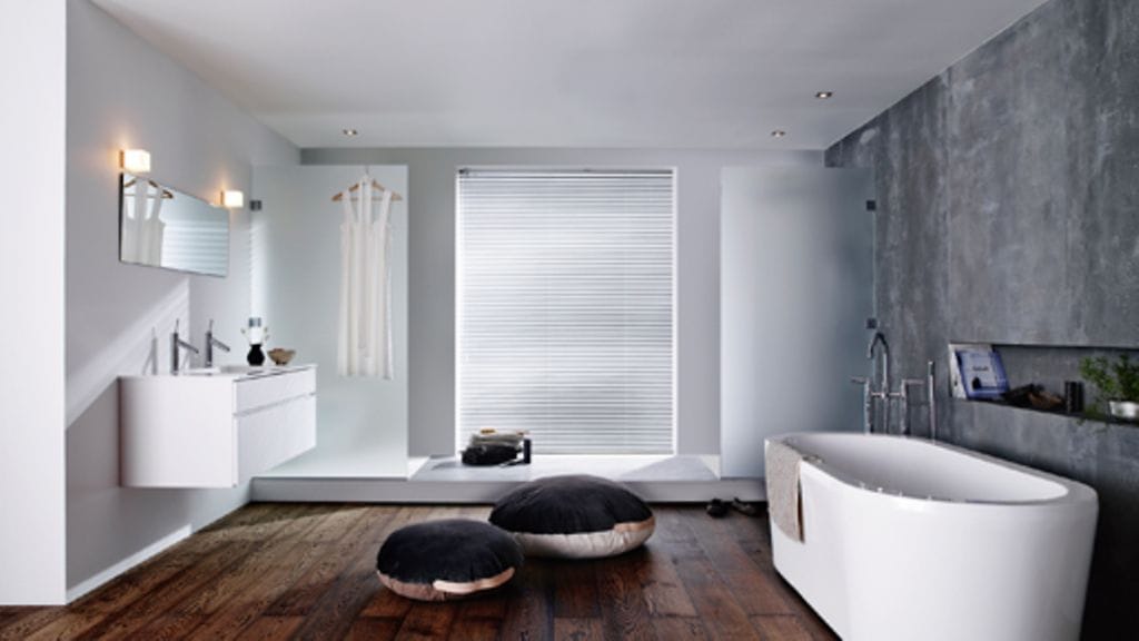Kosteutta kestävän betonipinnan saaminen kylppäriin vaatii asiantuntevan tekijän. Kivialustainen seinä tasoitetaan ensin käsin märkätilatasoitteella. Tasoitepinta hiotaan auki hiomakivellä, jolloin saadaan betonia muistuttava, rouhea pinta. Päällimmäiseksi sivellään kirkas epoksilakka. Levypintaisille seinille betonifiiliksen saa kosteudenkestävällä sisustuslaastilla. Myös tässä työssä tarvitaan asiantuntijan apua. Keraamista Nouvelle-lankkulaattaa on neljää sävyä, Laattapiste Collection.