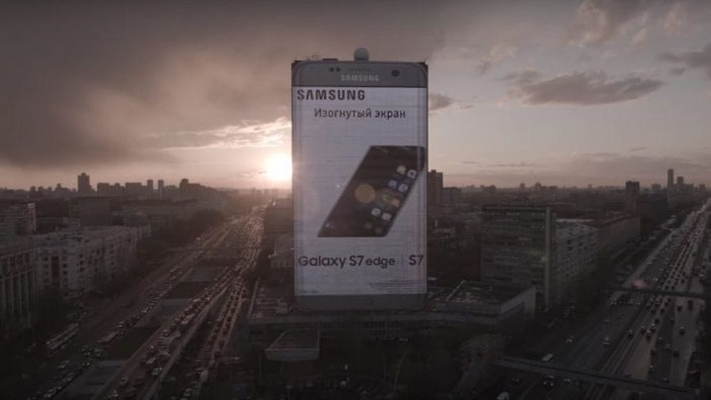 Moskovaan ilmaantunut valtaisa Galaxy S7 edge -puhelin on itse asiassa LED-kylttikokonaisuus. Puhelin peittää yhden kookaan rakennuksen julkisivun täysin. Kokonaisuudella on korkeutta 80 metriä ja leveyttä 40 metriä.