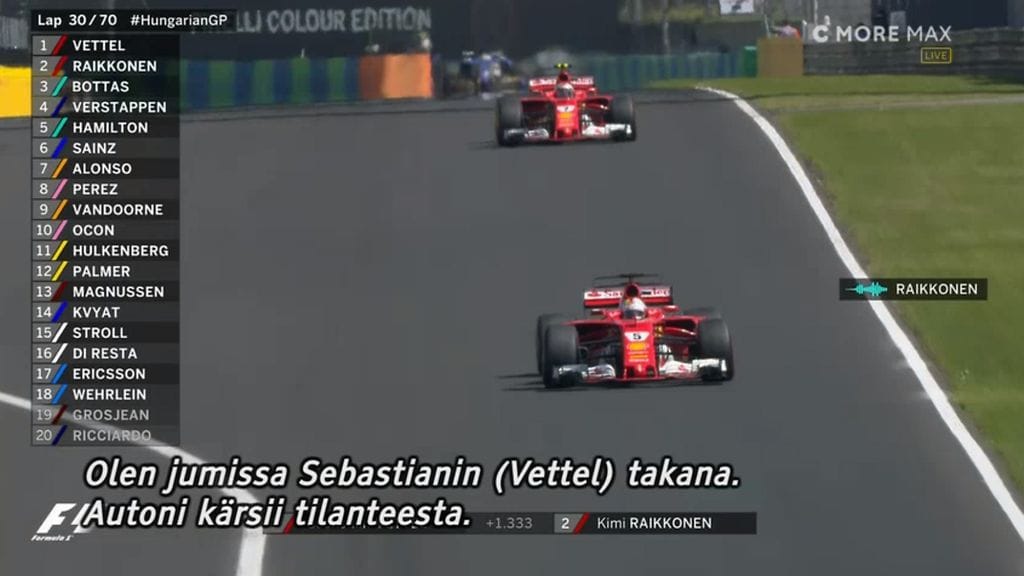 - Kimi teki tänään juuri sitä, mitä häneltä pyydettiin. Hän hoiti tonttinsa täydellisesti. Tämä tulos osoittaa, miten hyvin suomalaiset ovat tänä vuonna ajaneet, kun olemme pettyneitä sijoihin kaksi ja kolme.