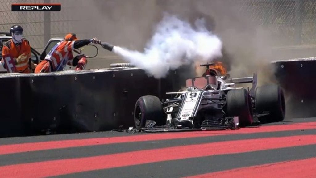 Ruotsalainen istui kaikessa rauhassa autossaan, kun sen takapää oli jo liekeissä. Pelastushenkilöstön tulo kesti, mutta lopulta Sauber käski kuskiaan nopeasti ylös autosta.