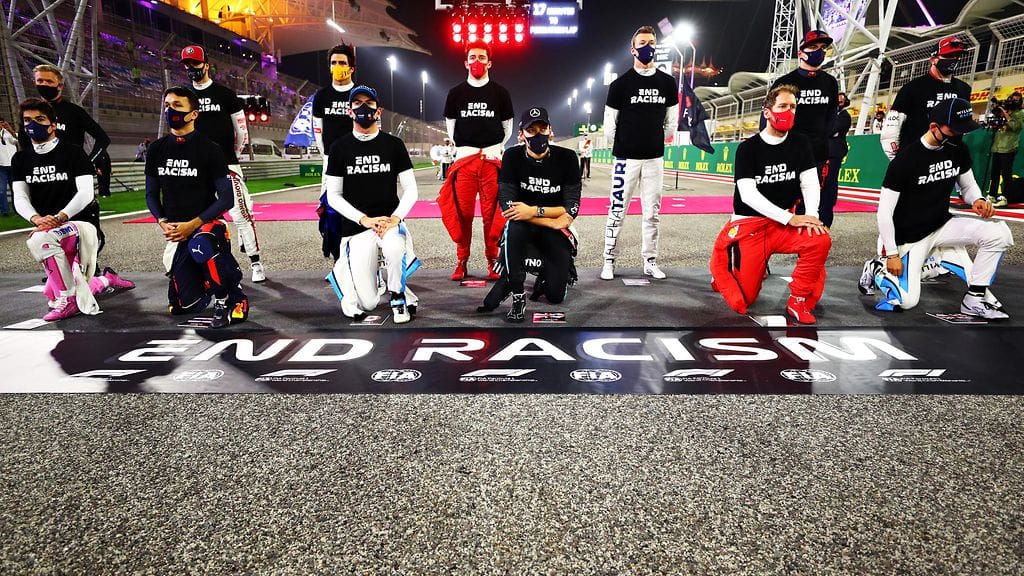Viime kaudella vain osa kuljettajista osallistui Black Lives Matter -liikkeen hengessä tapahtuneeseen polvistumiseen. Osa tyytyi pitämään rasisminvastaista iskulausetta kantanutta t-paitaa, vaikka eivät Lewis Hamiltonin aktiivisesti kampanjoimaan polvistumiseen osallistuneetkaan.