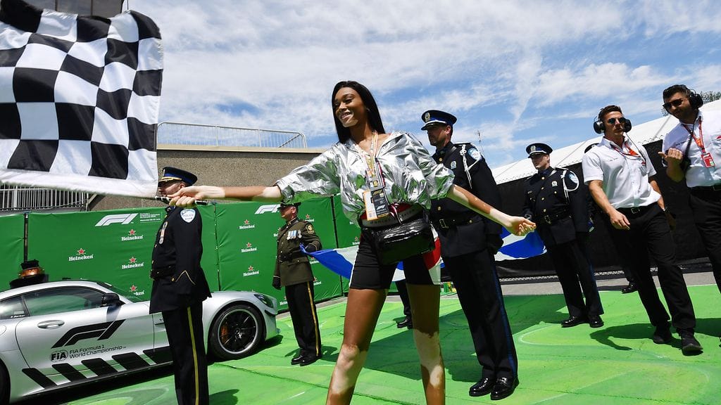 Sattuiko virhe sitten ohjeistuksessa – siitä ei ole ainakaan vielä tietoa – mutta ruutulippua Montrealissa heilutti malli Winnie Harlow.