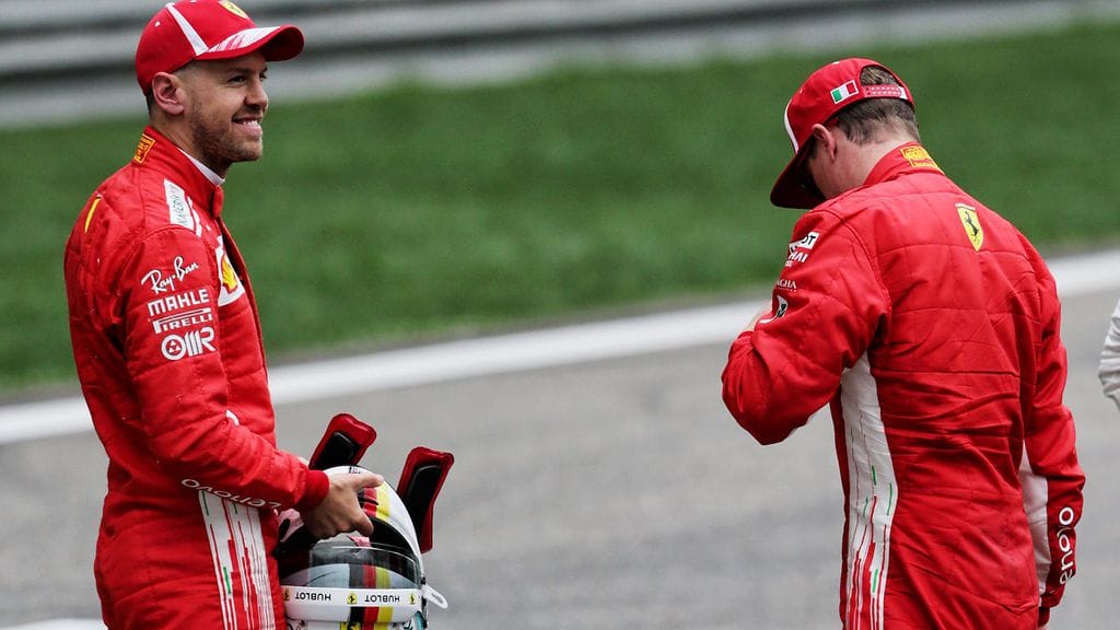 Kimi Räikkönen pääsee hyökkäämään radan paremmalta puolelta tallikaverinsa Sebastian Vettelin kimppuun sunnuntain Kiinan F1-kisasta, josta on jälleen lupa odottaa taktisesti mielenkiintoista taistelua.