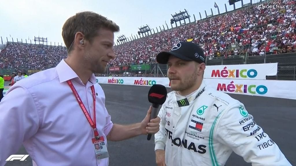 Haastattelua tehnyt F1-maailmanmestari Jenson Button tarttui siihen, millaisia suorituksia Bottakselta on nähty tuoreeltaan. Suomalaiskuski ajoi edellisessä kisassa Japanissa voittoon. Meksikossa Bottas ajoi vahvasti niin kisan alussa keskikovilla renkailla kuin kisan lopussa kovimmalla hard-seoksella.