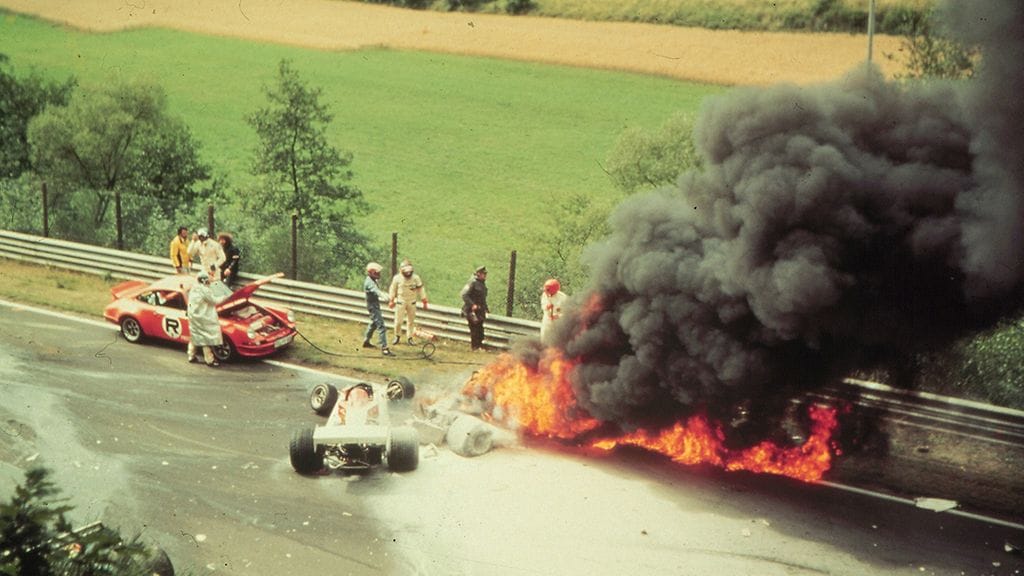 Elokuun 1. päivänä vuonna 1976 Saksan GP:ssä Nürburgringin hurjalla yli 22 kilometriä pitkällä Nordschleifella tapahtui yksi F1-historian kuuluisimmista onnettomuuksista. Onnettomuus oli viedä Niki Laudan hengen.