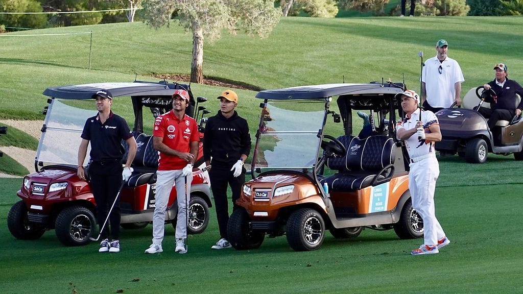 F1-tähdet Lando Norris ja Carlos Sainz osallistuivat sangen erikoiseen, formuloiden ja golfin yhteiseen livelähetystapahtumaan, josta ei hämmennystä puuttunut.