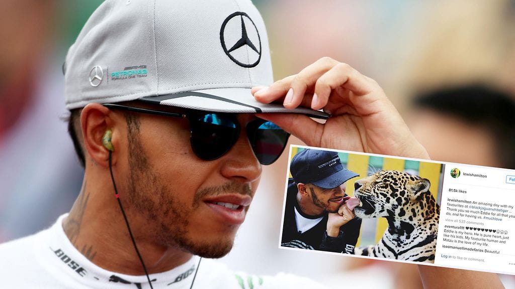 Hamilton julkaisi sosiaalisen median kanavissa erilaisia kuvia, joissa F1-mestari viettää tuttavallisen oloisesti aikaa eri villipetojen kanssa.