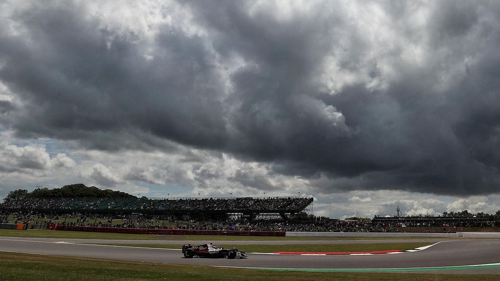 Iso-Britannia ja epävakaa sää. Takuuvarma kombinaatio. F1:n Britannian GP -viikonloppu alkoi ankeissa olosuhteissa, kun vesisade kasteli radan pariinkin eri otteeseen ensimmäisten vapaiden harjoitusten aikana. Alfa Romeon Valtteri Bottas tempaisi session kärkiajan.