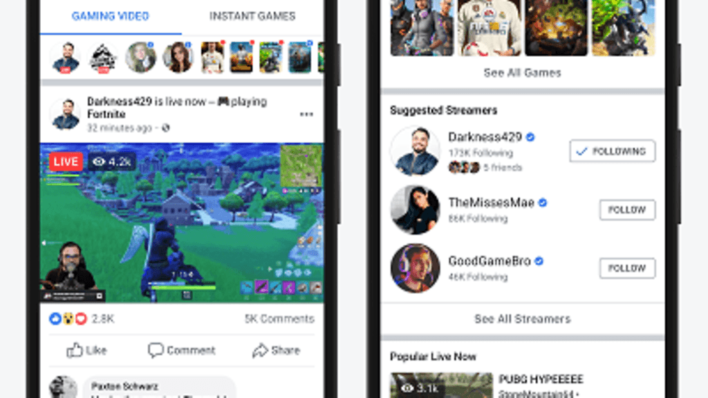 Käytännössä uusi pelikeskus toimii uutisvirrasta tutulla periaatteella. Sivun ylälaidasta löytyvä helposti kaikki seuratut kanavat, pelaajat ja sillä hetkellä käynnissä olevat kiinnostavat suorat lähetykset. Lisäksi Facebook on lisännyt näkyvät linkit yhtiön omiin Instant Games -peleihin.