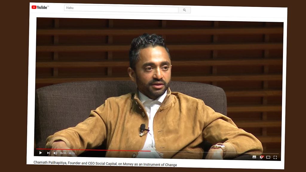 – Jos ruokit petoa, se tuhoaa sinut, Palihapitiya kuvaa.