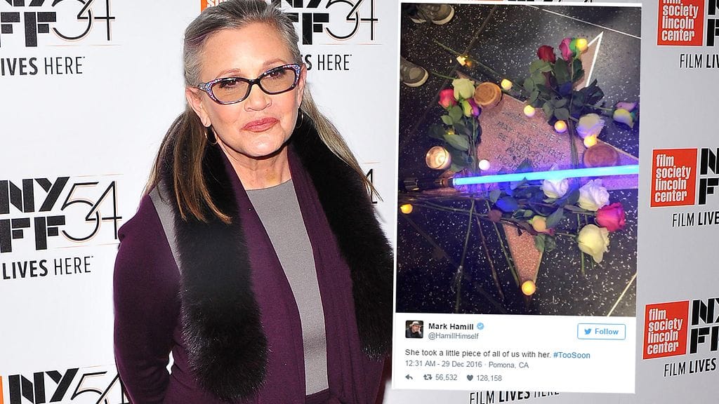 Kollegaansa ovat käyneet muistelemassa paikalla myös tämän Star Wars -näyttelijäkaverit, joista Fisherin veljeä elokuvissa näytellyt Mark Hamill twiittasi paikalta koskettavan kuvan.