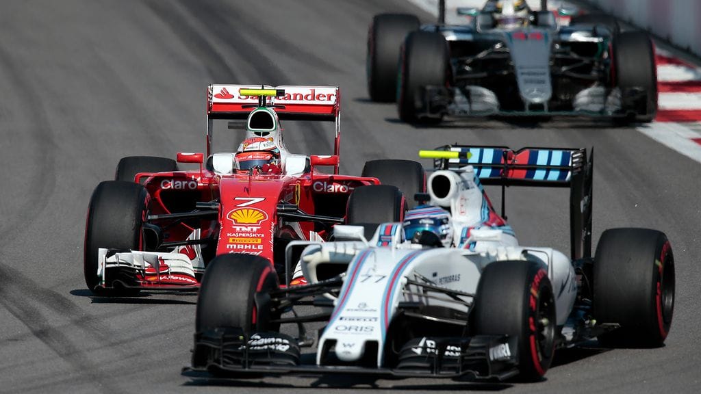 Kimi Räikkönen oli Venäjän F1-kisassa kolmas. Edelle pääsivät Mercedekset Nico Rosberg ja Lewis Hamilton.