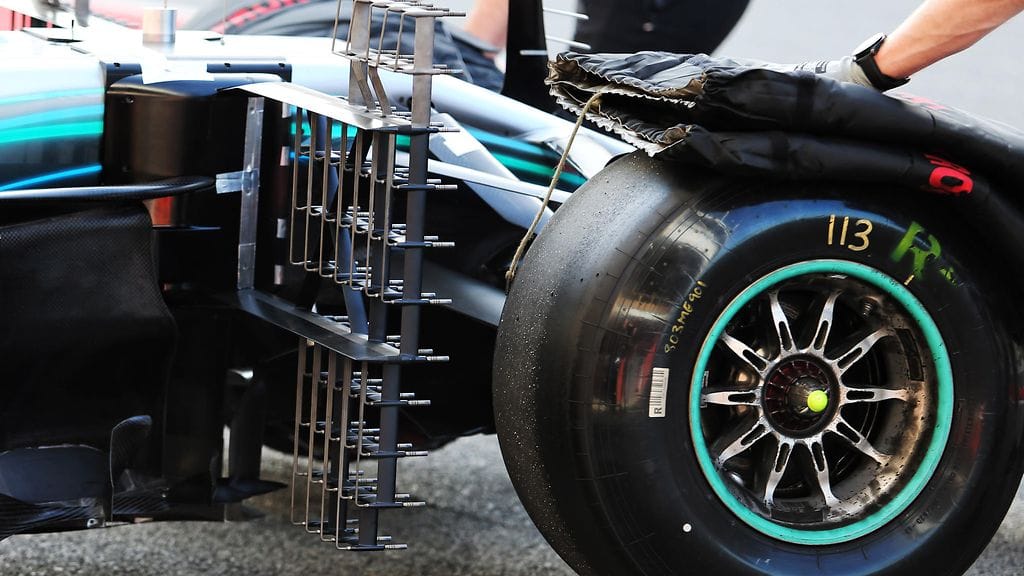 Mercedeksen takapyörien keskiosassa ja vanteissa on reikiä, jotka helpottavat ilmavirtauksia ja estävät samalla rengaslämpötilojen nousua liian suuriksi. Ferrarilla epäiltiin suunnittelun laillisuutta ja varmuuden vuoksi Mercedes tukkikin reikänsä viime viikonloppuna Austinissa.