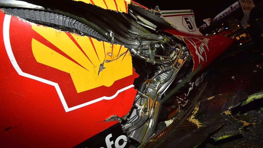 Räikkönen ja Vettel keskeyttivät molemmat Singaporen sateiden kisan avauskierroksen kolarissa, jossa Red Bullin Max Verstappen jäi heidän väliinsä. Suomalaiskuski joutui jäämään saman tien radan varteen kärsittyään osumista runsaita vaurioita.