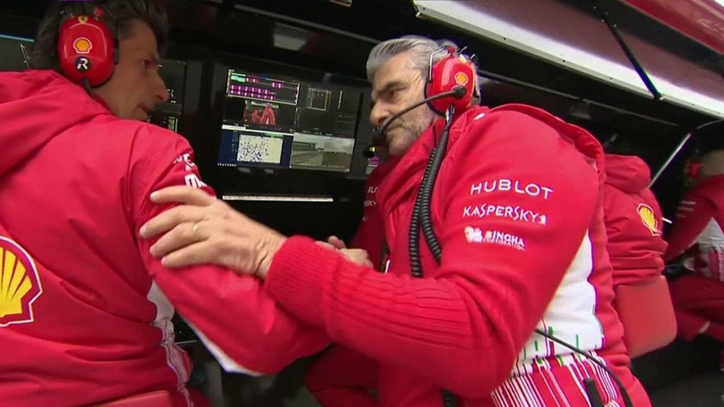 Jutun videolla näkyy hyvin, kuinka Räikköseltä karannut paalupaikka harmitti myös Arrivabenea. Italialaispomo onnittelee vieressä istuvia insinöörejä ja poistuu nopeasti varikkomuurilta.