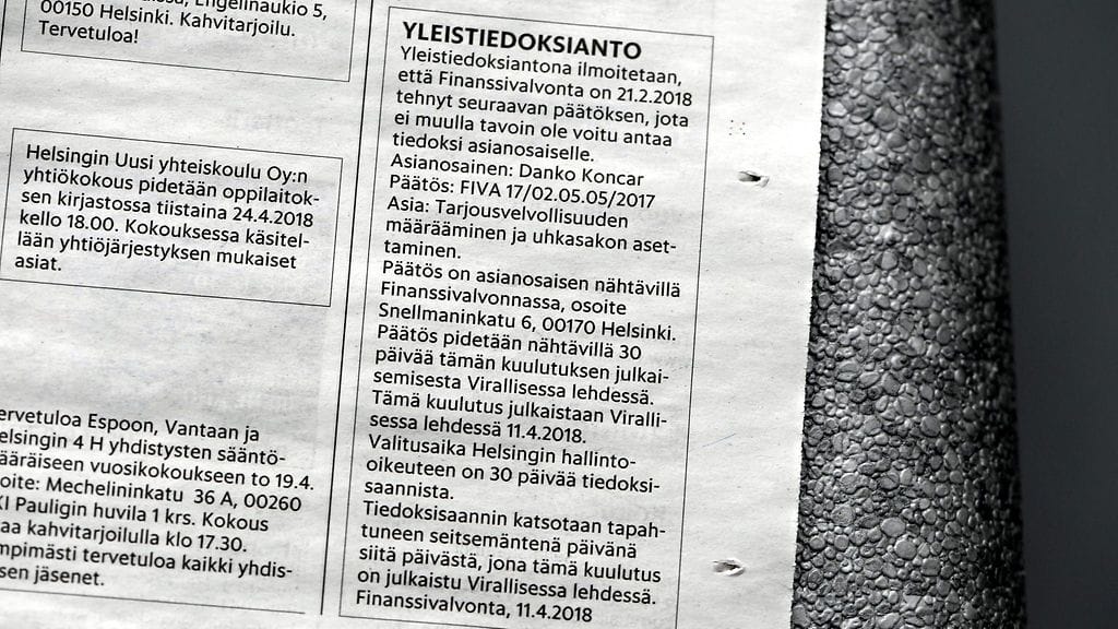 Fiva velvoitti Koncarin tekemään ostotarjouksen yhtiön osakkeista jo vuonna 2018 ja asetti velvoitteiden tehosteeksi uhkasakon.