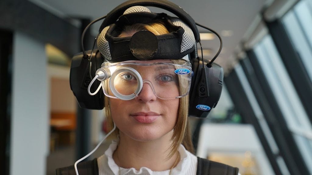 Krapulassa ajamista simuloidaan muun muassa kuulemista häiritsevillä kuulokkeilla, näköä sumentavilla linsseillä ja päänsärkyä aiheuttavan kireällä päähineellä.